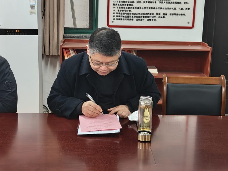 會(huì)后,全體紀(jì)檢監(jiān)察干部分別簽署了《拒絕酒駕醉駕承諾書(shū)》,紛紛表示簽訂承諾書(shū),既是表率,也是約束,作為紀(jì)檢監(jiān)察干部,自覺(jué)以更高標(biāo)準(zhǔn)、更嚴(yán)要求踐行忠誠(chéng)干凈擔(dān)當(dāng)!樹(shù)牢紀(jì)律和規(guī)矩意識(shí),消除僥幸心理,從思想源頭上遏制紀(jì)檢監(jiān)察干部發(fā)生酒駕醉駕違紀(jì)違法行為,以實(shí)際行動(dòng)為大力營(yíng)造風(fēng)清氣正的良好政治生態(tài)、遵紀(jì)守法的社會(huì)環(huán)境提供堅(jiān)強(qiáng)保障。