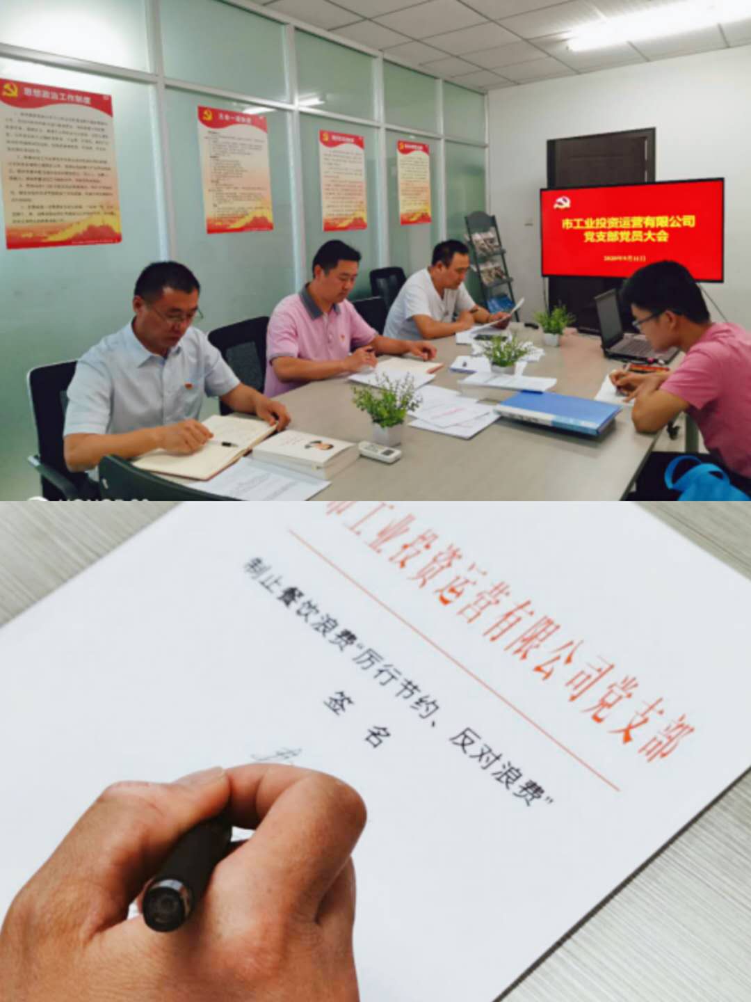 9月11日下午,工投支部在集團(tuán)五樓黨員活動(dòng)室召開(kāi)黨員大會(huì)。首先按學(xué)習(xí)計(jì)劃學(xué)習(xí)了習(xí)近平談治國(guó)理政第三卷;2.傳達(dá)學(xué)習(xí)了淮北市建投控股集團(tuán)有限公司黨委印發(fā)《關(guān)于深入學(xué)習(xí)宣傳貫徹習(xí)近平總書(shū)記考察安徽和在扎實(shí)推進(jìn)長(zhǎng)三角一體化發(fā)展座談會(huì)上的重要講話精神的落實(shí)方案》的通知;3.學(xué)習(xí)貫徹了《習(xí)近平對(duì)制止餐飲浪費(fèi)行為作出的重要指示》并在現(xiàn)場(chǎng)舉行“厲行節(jié)約、反對(duì)浪費(fèi)”簽名活動(dòng);4.傳達(dá)《關(guān)于兩起群眾身邊腐敗和不正之風(fēng)問(wèn)題》的通報(bào);5.認(rèn)真學(xué)習(xí)了集團(tuán)公司意識(shí)形態(tài)工作秘密文件精神,研究部署意識(shí)形態(tài)領(lǐng)域風(fēng)險(xiǎn)隱患排查、突出問(wèn)題整治工作,會(huì)議要求,始終堅(jiān)持馬克思主義在意識(shí)形態(tài)領(lǐng)域指導(dǎo)地位的根本制度,把學(xué)習(xí)宣傳貫徹習(xí)近平新時(shí)代中國(guó)特色社會(huì)主義思想作為首要政治任務(wù)。通過(guò)實(shí)時(shí)查、重點(diǎn)查、研判查,全面梳理排查本單位意識(shí)形態(tài)領(lǐng)域風(fēng)險(xiǎn)隱患,列出問(wèn)題清單、任務(wù)清單和責(zé)任清單,制定整治方案。