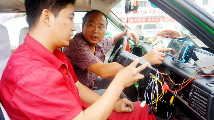 1技術人員正在安裝車載設備