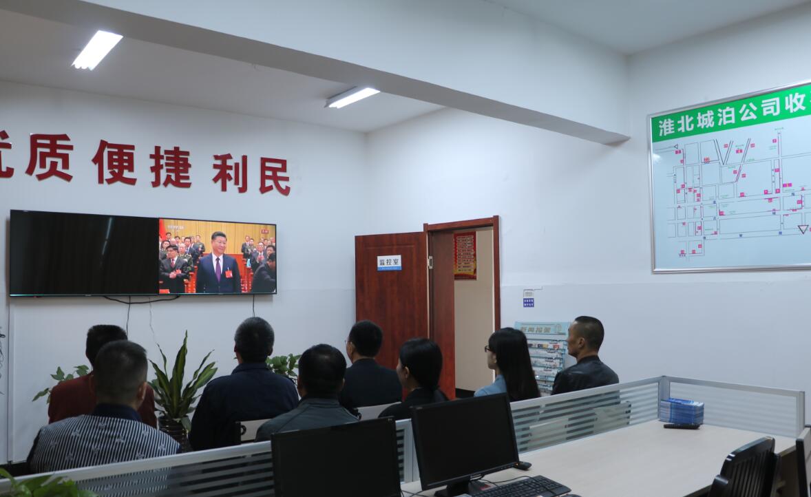 10月18日上午9點,城泊公司響應集團公司號召,組織公司黨員及機關全體人員集中觀看學習黨的第十九次全國代表大會開幕會,聆聽學習習近平總書記代表十八屆中央委員會向大會作的工作報告。