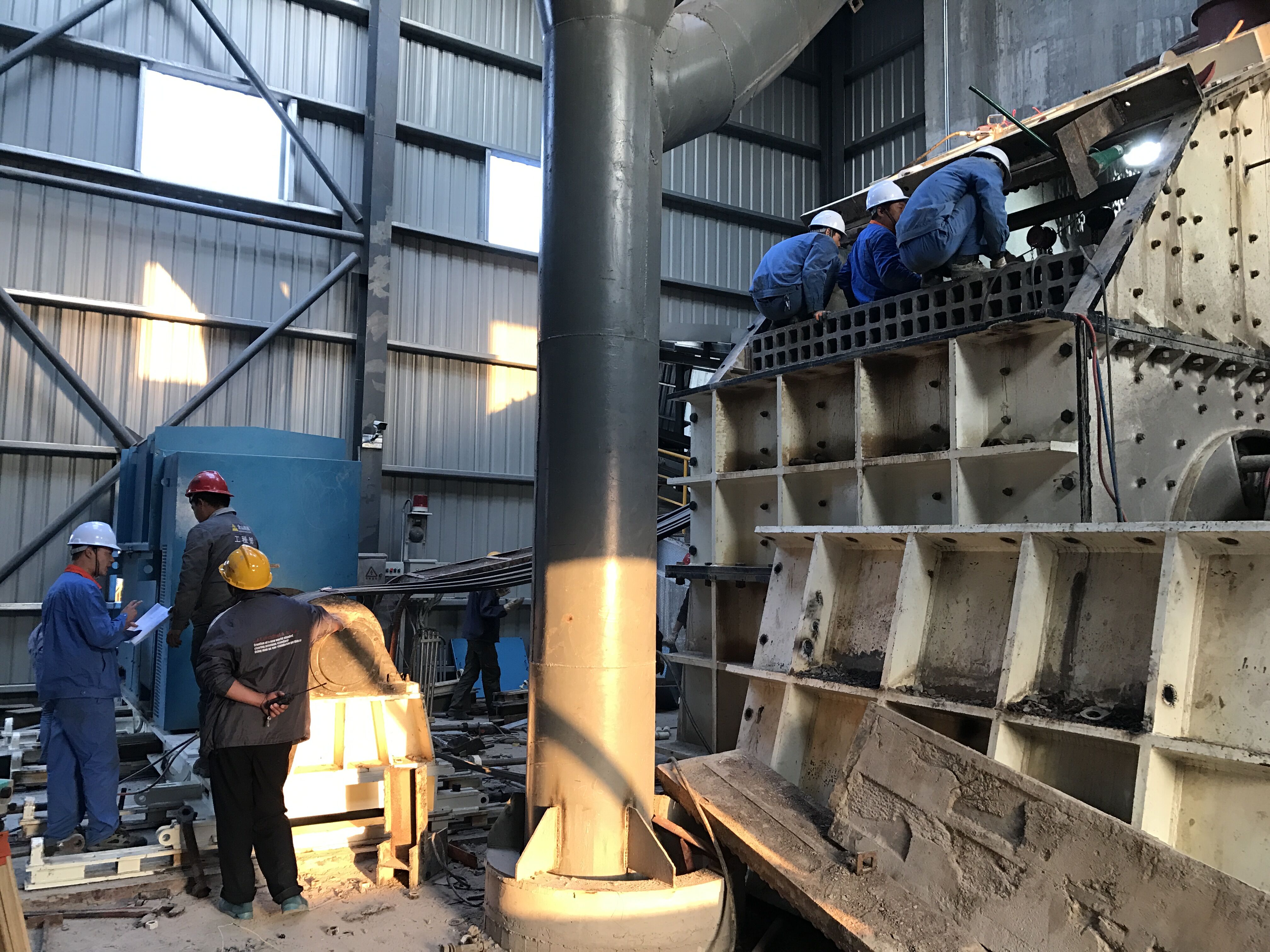10月26日上午,通鳴礦業(yè)生產(chǎn)部對(duì)生產(chǎn)線上的破碎機(jī)展開檢測(cè)維修。以機(jī)修工為主、其他工種為輔,大家相互配合、分工明確,一絲不茍的檢測(cè)破碎機(jī)的每一處,不放過任何一個(gè)細(xì)節(jié),更換了破碎機(jī)的錘頭、錘軸和蓬條。本次檢測(cè)維修保障了破碎機(jī)的正常運(yùn)作。