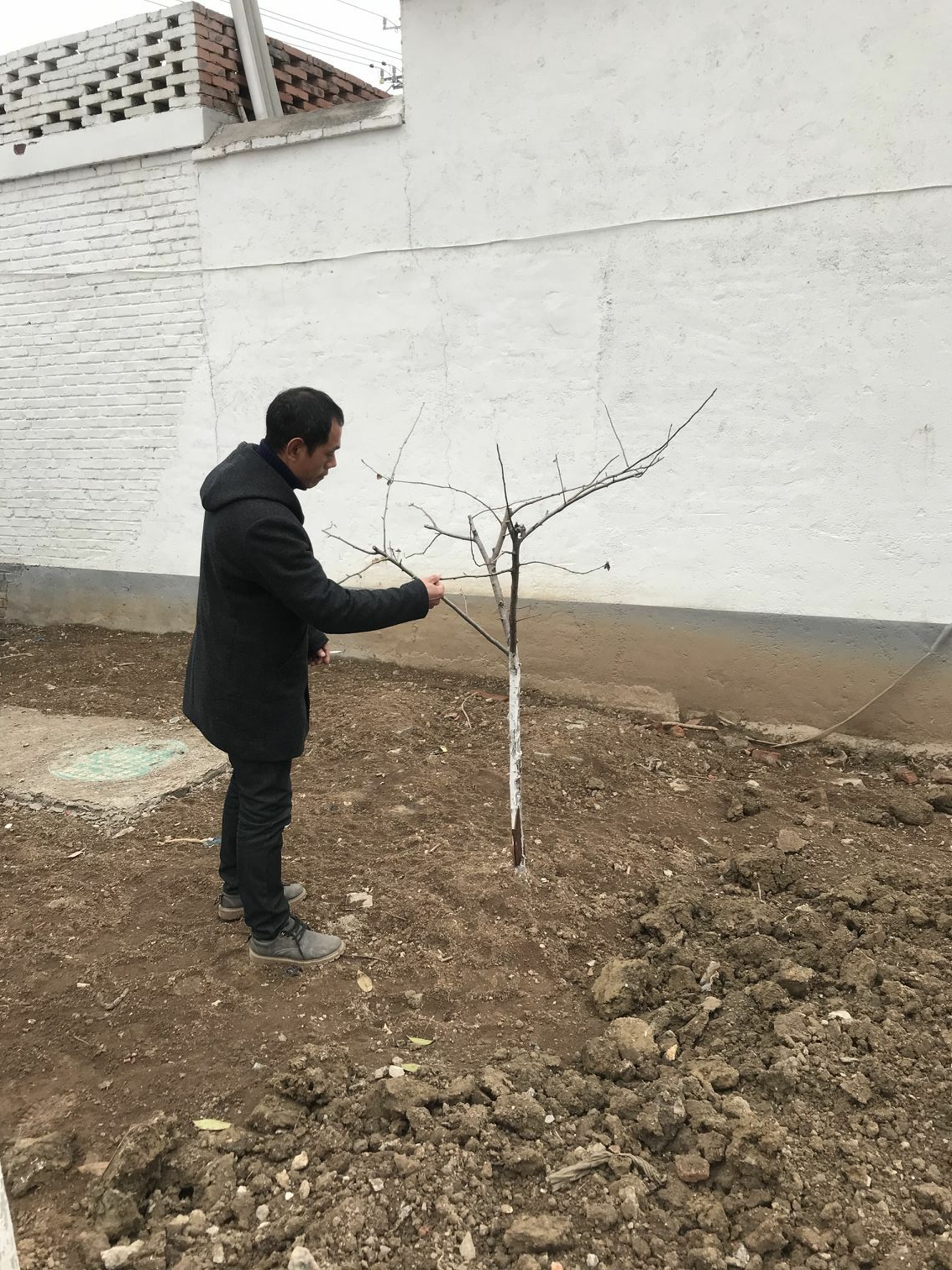 生態(tài)景觀公司扶貧小組于2019年2月27日來到火神廟村呂秀英老人家,對老人家年前種植的果樹苗進行了仔細查看,發(fā)現(xiàn)種植的6棵果樹苗部分死亡,具體原因為天氣寒冷,且貧困戶家中年前未接通自來水,用水困難。