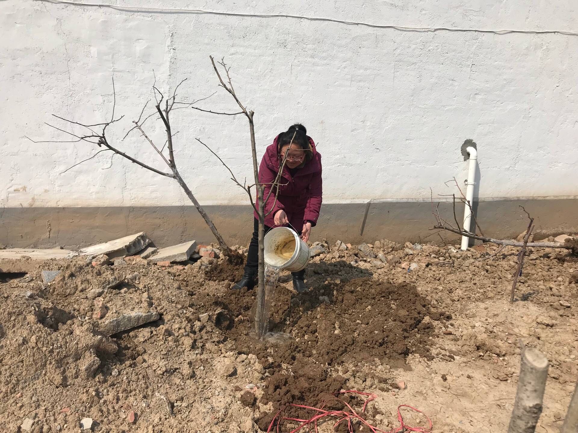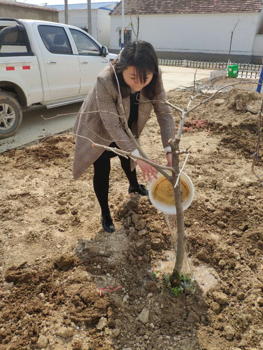 生態(tài)景觀公司扶貧小組一行4人,3月25日驅(qū)車(chē)帶著5棵蘋(píng)果樹(shù)苗來(lái)到火神廟村呂秀英老人家進(jìn)行樹(shù)苗補(bǔ)種。大家分工植樹(shù),有的挖坑,有的扶樹(shù),有的培土,有的澆水,每道工序有條不紊,一片繁忙。扶貧小組成員不辭辛苦,以實(shí)際行動(dòng)投身到扶貧工作中去,為貧困戶獻(xiàn)出一份愛(ài)心,點(diǎn)燃一盞希望。助力貧困戶加快脫貧致富步伐,共同邁入全面小康。