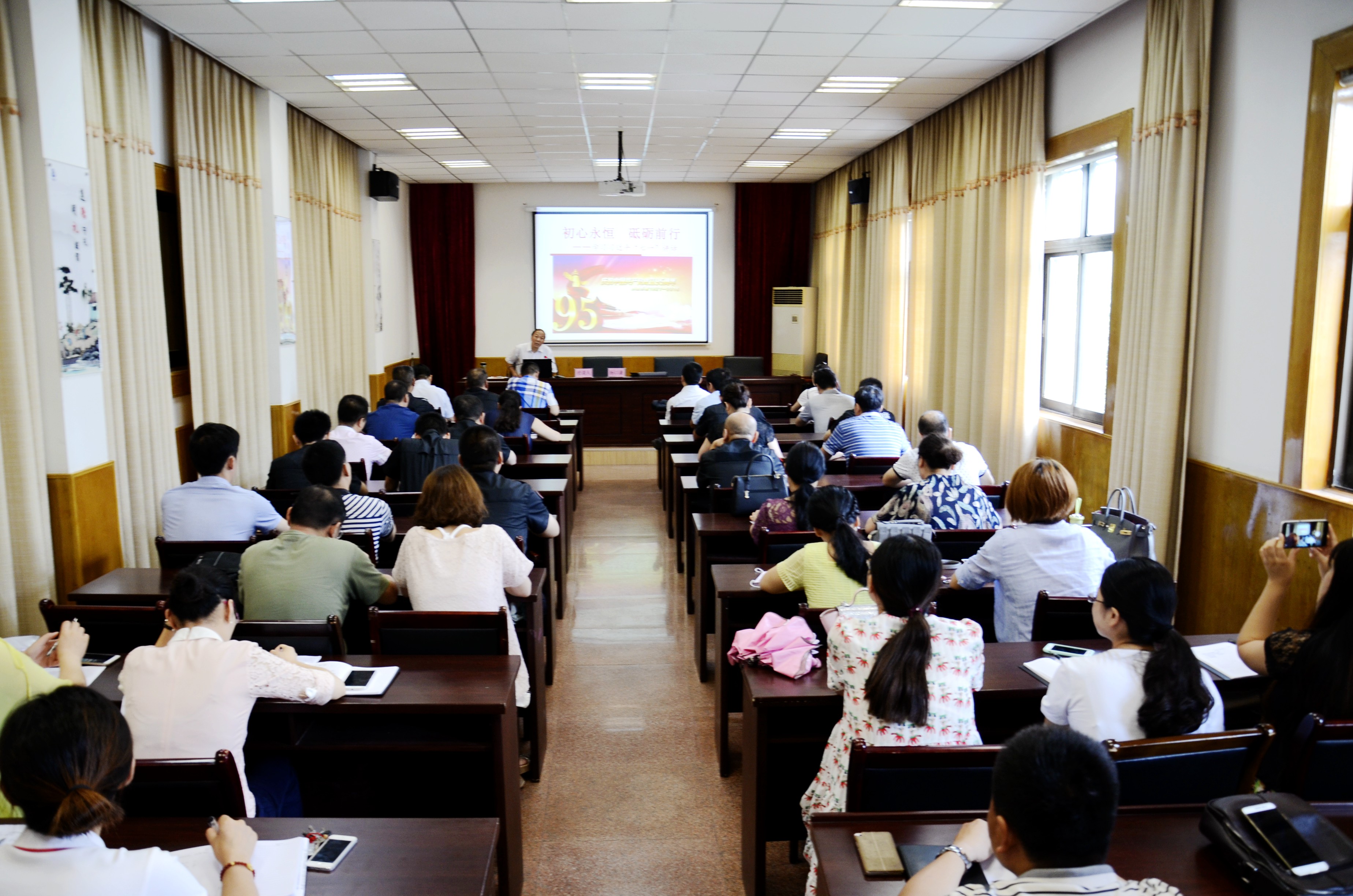 講座邀請市學(xué)習(xí)習(xí)近平總書記“七一” 重要講話精神宣講團成員、市委黨校副校長、市委黨校教授、市政協(xié)常委楊以謙教授作了題為《初心永恒 砥礪前行——學(xué)習(xí)習(xí)近平“七一”講話》的講座。楊以謙教授從學(xué)習(xí)習(xí)近平“七一”講話“不忘初心”為切入點,以理論和實際相結(jié)合的科學(xué)方法,運用豐富的黨史資料,通過詳實的事例、透徹的說理、生動的表述,深入淺出地闡述了對中國共產(chǎn)黨對中國乃至全世界所作出的杰出貢獻,并聯(lián)系淮北實際強調(diào)了“兩學(xué)一做”的重要性。
